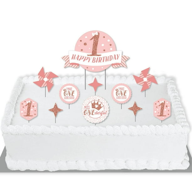 1st Birthday Little Miss Onederful Girl First Birthday Party Cake Decorating Kit Happy Birthday Cake Topper Set 11 Pieces Walmart Com Walmart Com